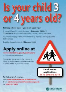 Contact: www.oxfordshire.gov.uk/admissions or email admissions.schools@oxfordshire.gov.uk
